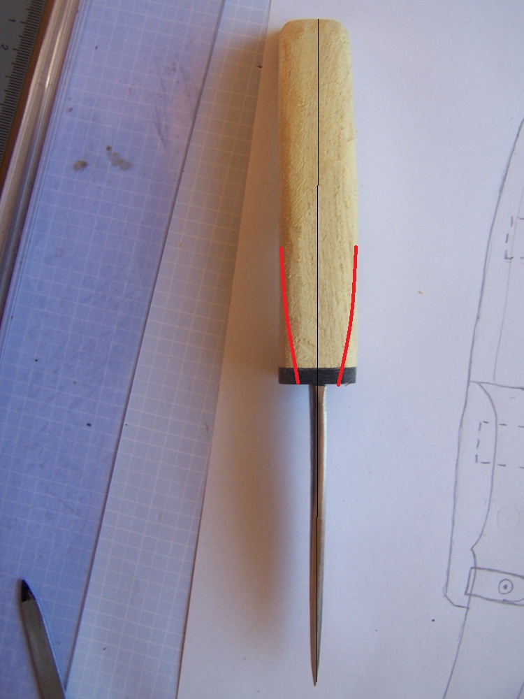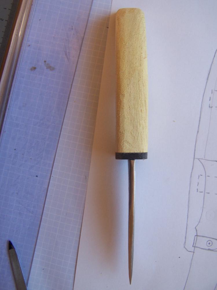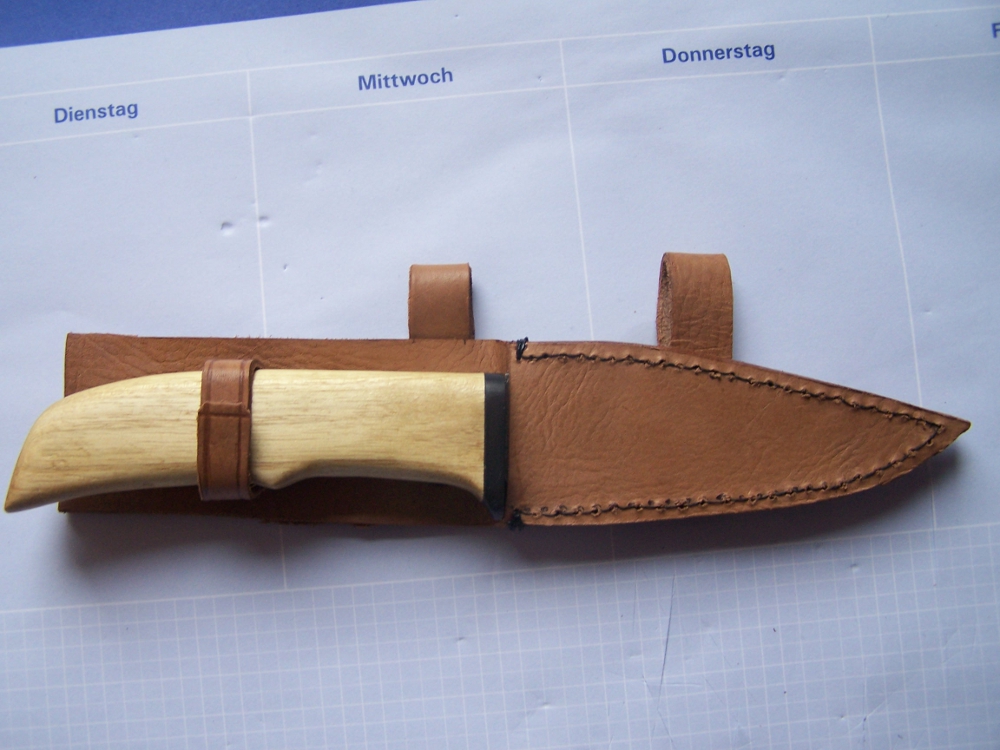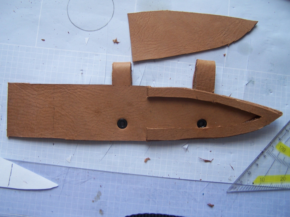 So heute hab ich im Keller Leder gefunden ( zum Glück, gibt hier nämlich nirgends Leder zum kaufen).Und gleich mal die Scheide angefangen.