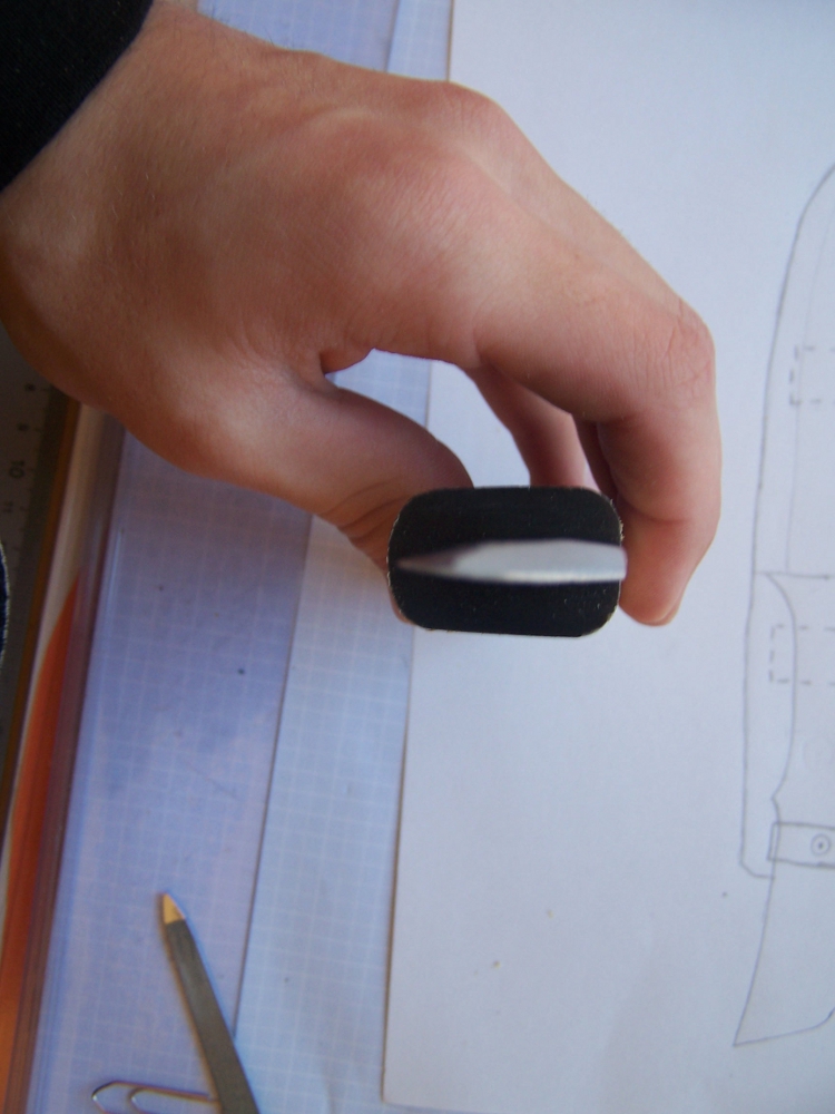 Die zwei "Platzhalter" aufkleben und die Gürtelschlaufen annieten.
