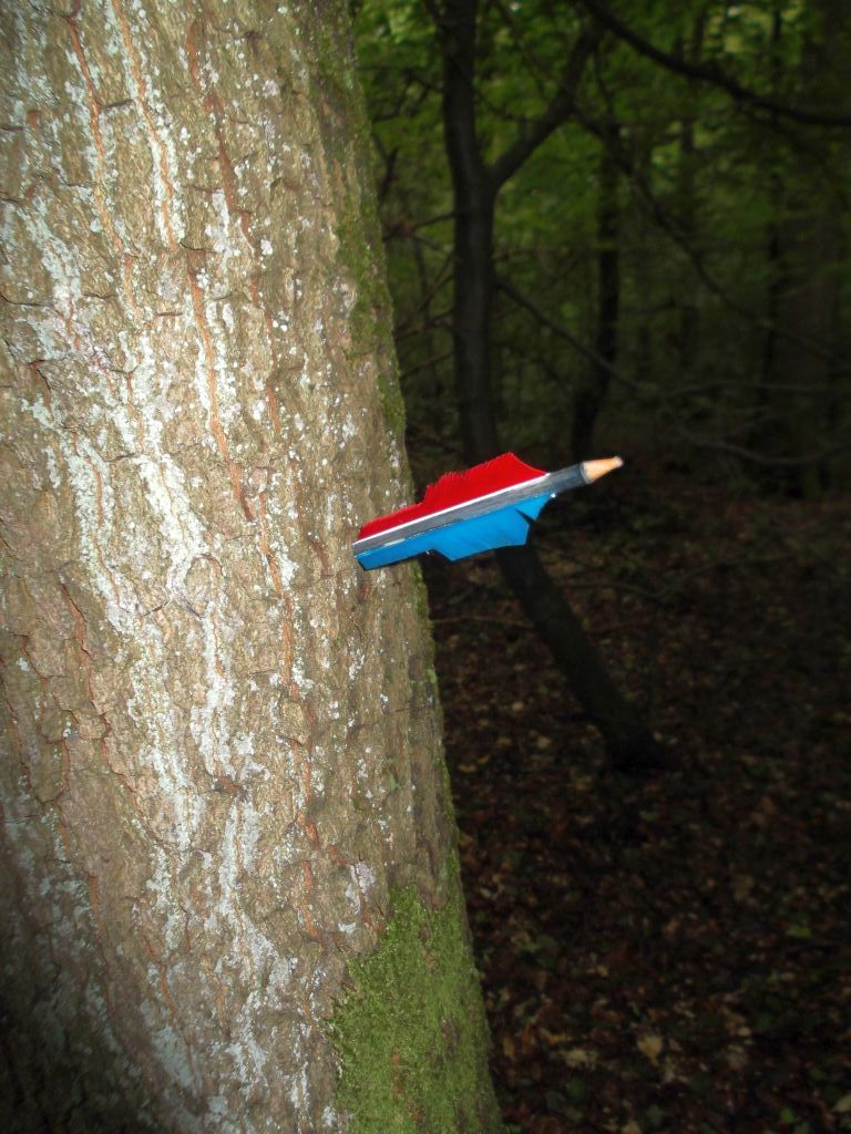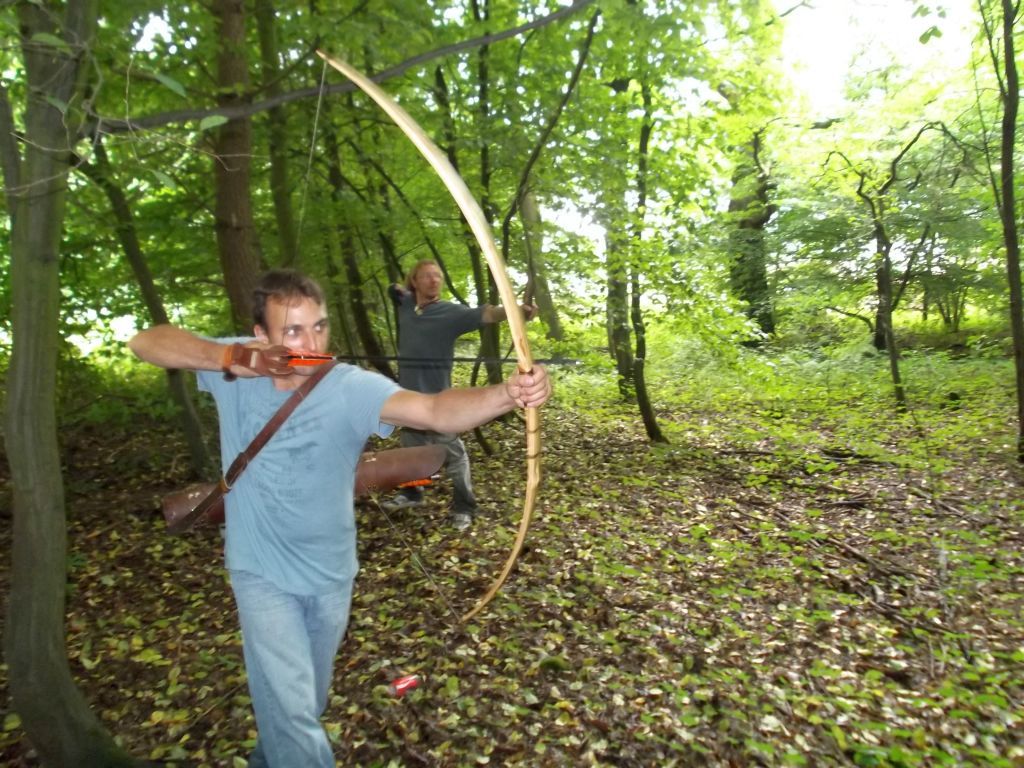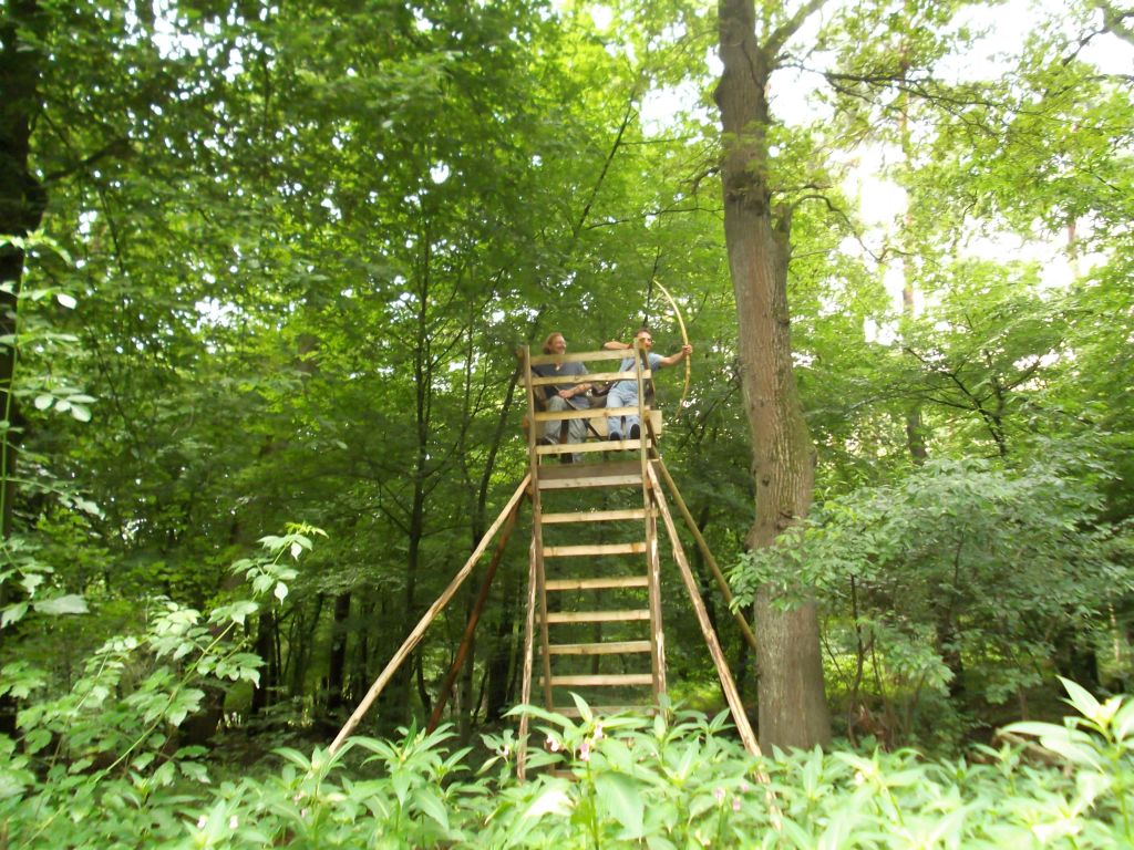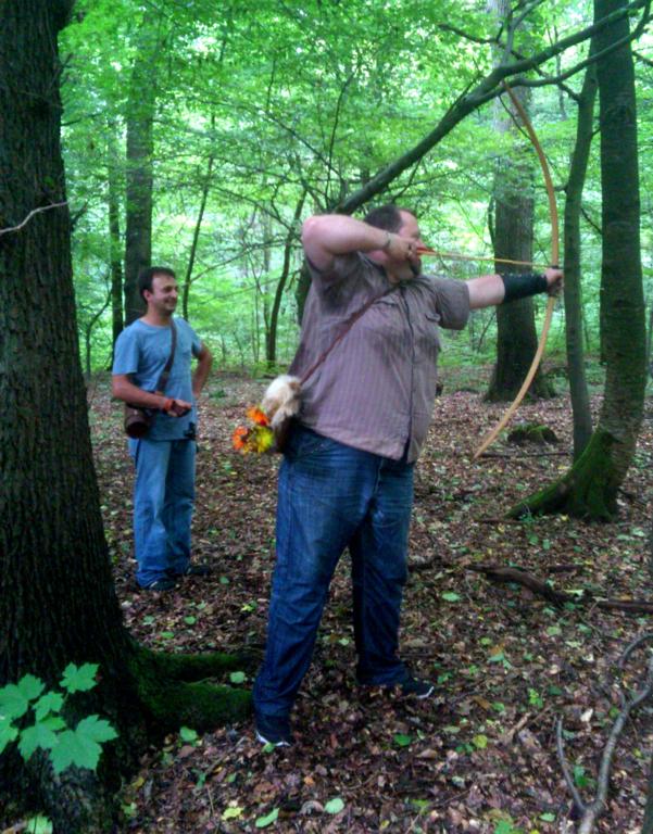 Wie mir von Morten erklärt wurde, handelt es sich dabei um Springkraut. Davon abgesehen, daß es wohl überhaupt nicht in hiesige Wälder gehört und heimische Arten durch seine Ausbreitung verdrängt, erschwert es das Finden eines Ziels erheblich, genauso wie das Wiederauffinden darin flöten gegangener Bogenschützen...