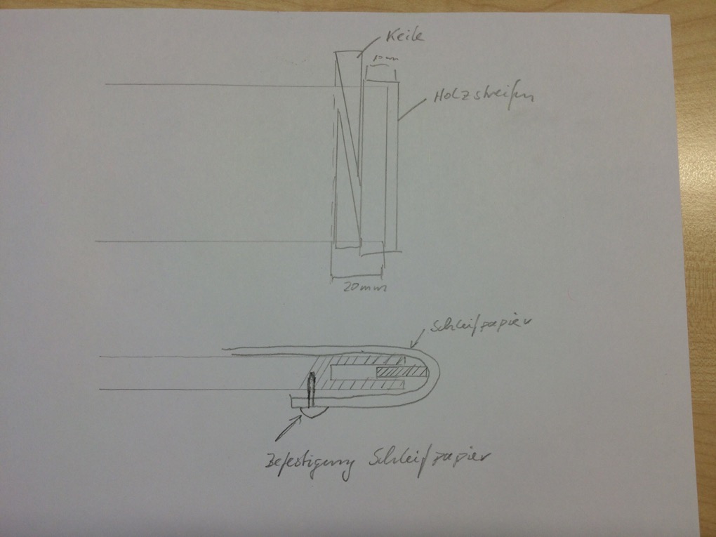 ich hätte eine Idee für die Befestigung des Schleifleinens bei der man nachträglich noch spannen kann.