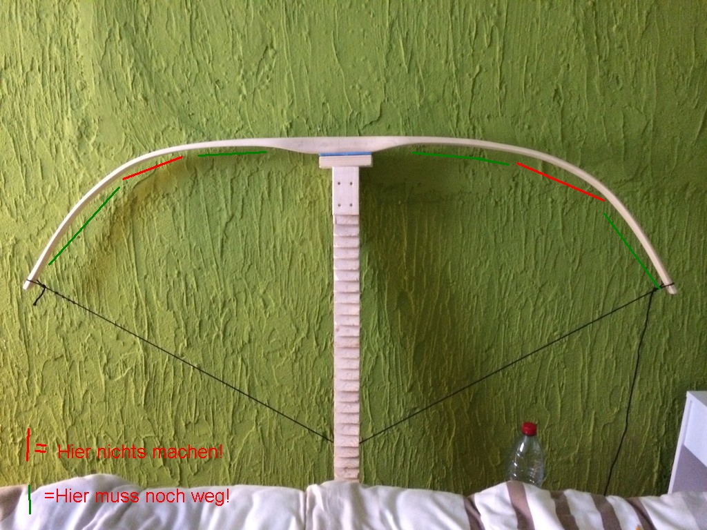Hiermit möchte ich dennoch den Tiller beenden und versuchen mit dem Bogen zu schiessen. Sollte er wirklich brechen, dann nehme ich das als Lernerfahrung hin.