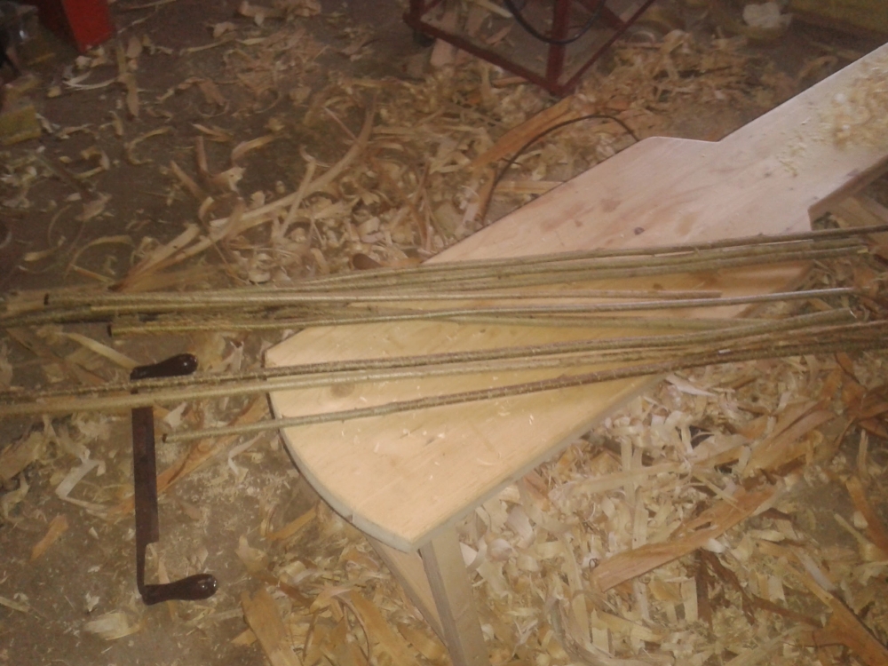Ich werde die Saplinge jeden Tag richten und nicht zusammen verschnüren. Ich hoffe die werden so schneller trocken und bleiben danach dauerhaft gerade (war ein Tip aus den Internet). Bald weiß ich's genauer.