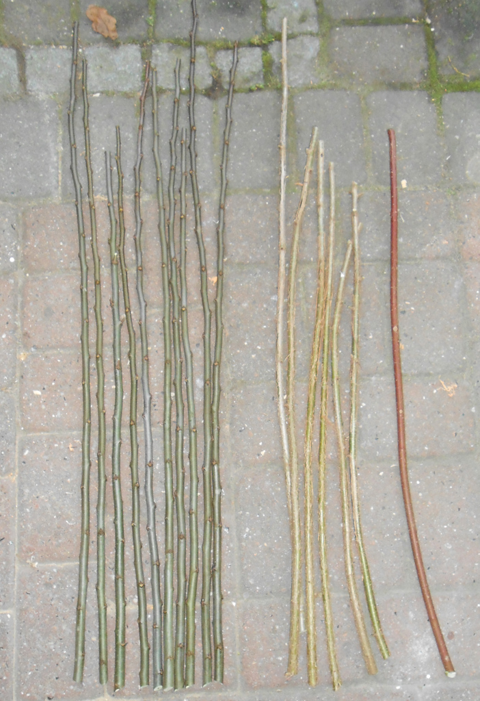 Bei Hasel taugen die dunkelbraunen Triebe weniger. Die Rinde geht schlecht runter und sie sind nicht so biegsam.