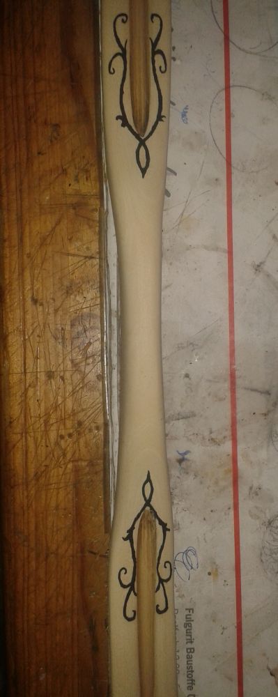 Erstmal heute mittag den ganzen Bogen geschliffen, dann den Markkanal mit meiner selbstgemachten Walnussbeize braun gebeizt.