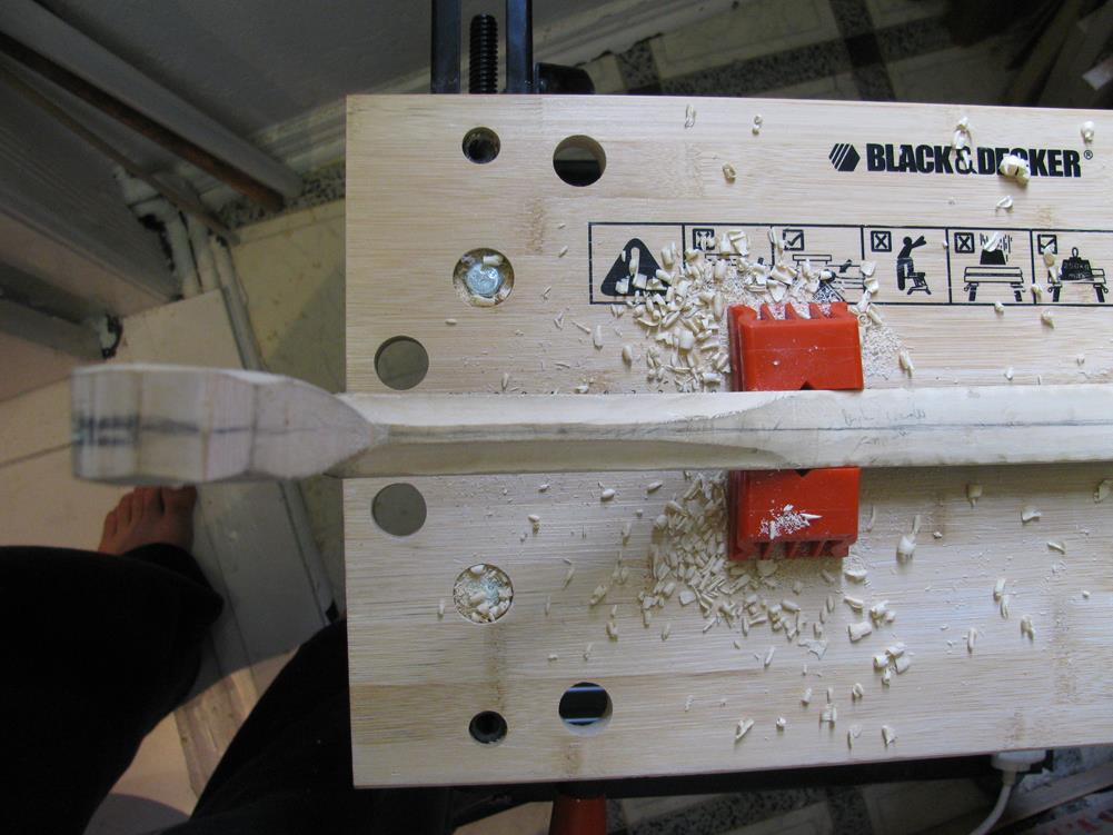 Inzwischen habe ich angefangen, den Holzkern in die endgültige Form zu bringen und bin mir dabei an