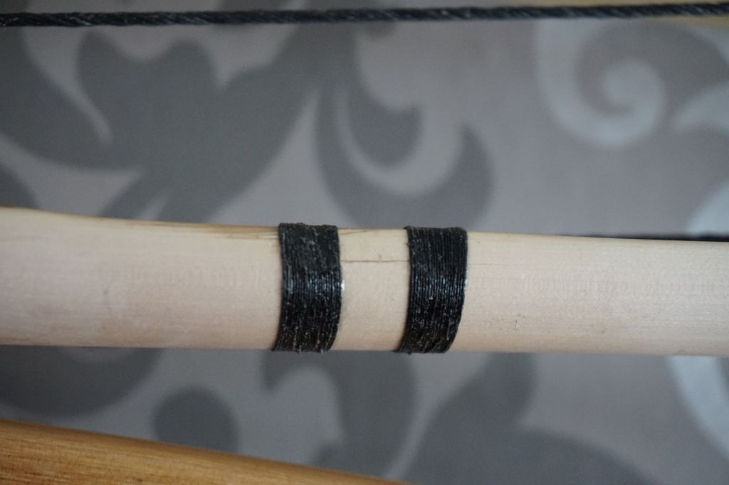 Bei dem Hartriegel musste ich leider eine kleine rep. durchführen. Ganz am Anfang bin ich seitlich ein wenig zu weit mit dem Zugmesser eingetaucht und habe mir einen Span abgehoben. Das meiste davon ist aus dem Bogen rausgefallen, jedoch ein kleiner oberflächlicher Span ist geblieben und ich hatte diesen mit Epoxidharz geklebt. Die Stelle hat das ganze Tillern/ Pumpen einwandfrei überlebt. Beim Aufspannen hat er gemeint er müsse sich wieder abheben, da habe ich Epoxidharz hineingefönt und ihn mit einer Wicklung gesichert. Ich habe ihn heute geschossen und er hält bis jetzt. Ich hoffe mal das bleibt so.
