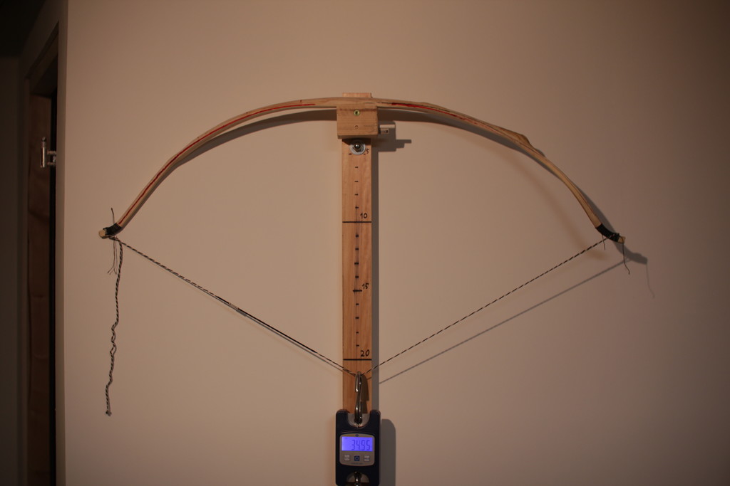 Da ich nur noch morgen Zeit habe und ich den Bogen jetzt nicht noch schwächer machen möchte lasse ich den Tiller jetzt mal so. Für den ersten Holzbogen bin ich jedenfalls zufrieden. Hab ihn auch auf 24" ausgezogen, da sind es momentan 42 Pfund. Testweise war ich mal kurz bei 25 Zoll, hab dann das Zuggewicht bei 15" gemessen, und dann hat er da schon so 0.5 bis 1 Pfund weniger gehabt wie kurz vorher.