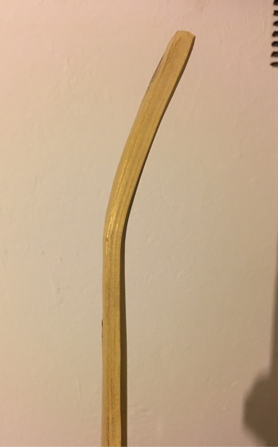 Dann habe ich doch noch ein Pflaster für das angebrochene Tip von Robinie 2 aus einem Reststück vom gleichen Stämmchen geschnitzt und nach 30min. im Dampf gebogen.
