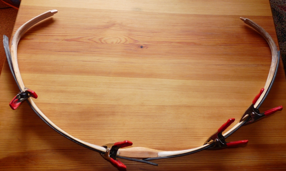 @ Stefan , Zwangsjacke deshalb um mit sanfter Gewalt den Radius so hinzudrückn wie den anderen.Der Türken / Koreaner wird wohl nicht so stark werden ,nur 3,5 mm Horn,4 mm Bambus und eine länge von 1300mm N/N.Ich hoffe das mit einer Sicherheitswicklung im Gefahrenbereich nichts schlimmes passiert.Schwer zu sagen was die Dübelfixirung bringt,jetzt wo keine Spannung mehr ist lasse ich sie weg. @ Markus, der ewige Kampf um gutes Material, ich versuche mal Bambus. Grüße Gerd