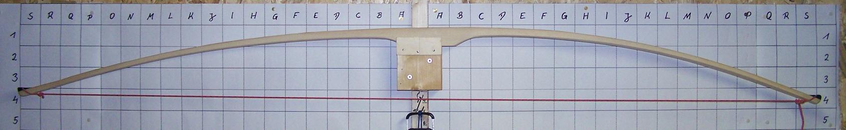 Am Anfang des Tillerns lag die gestraffte Sehne am Griff an - jetzt sind es ca. 1" Abstand zum Griff.