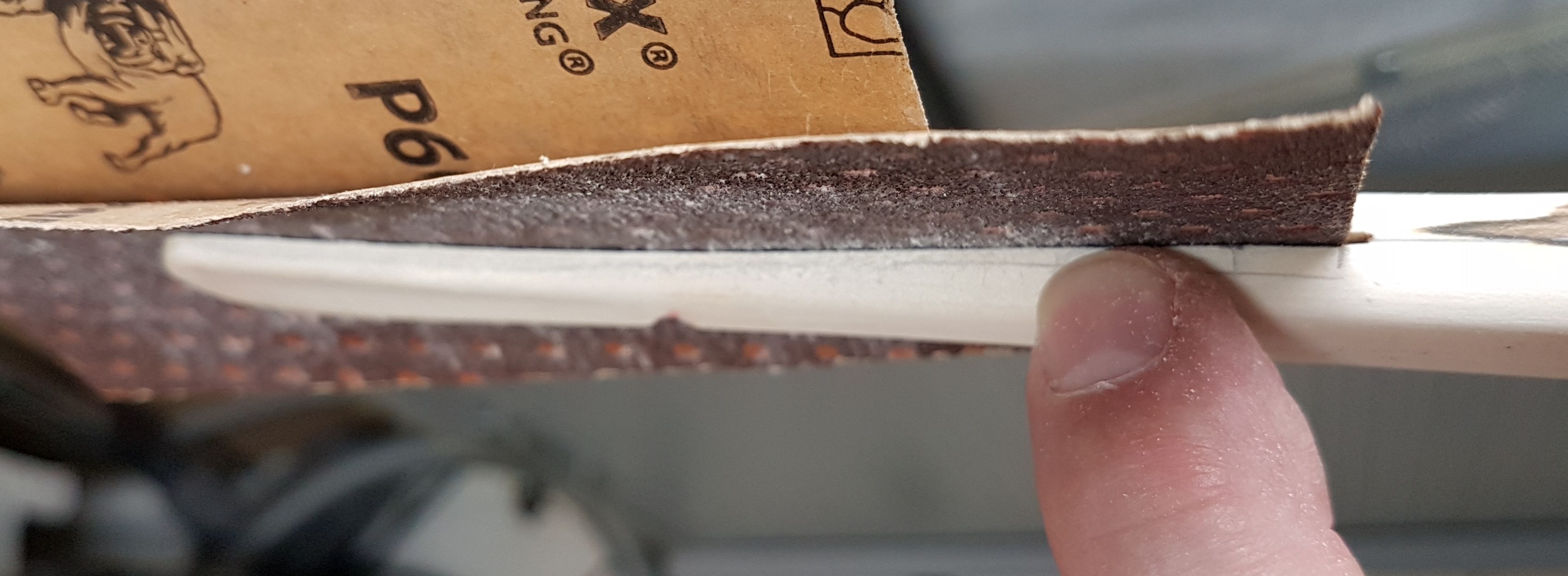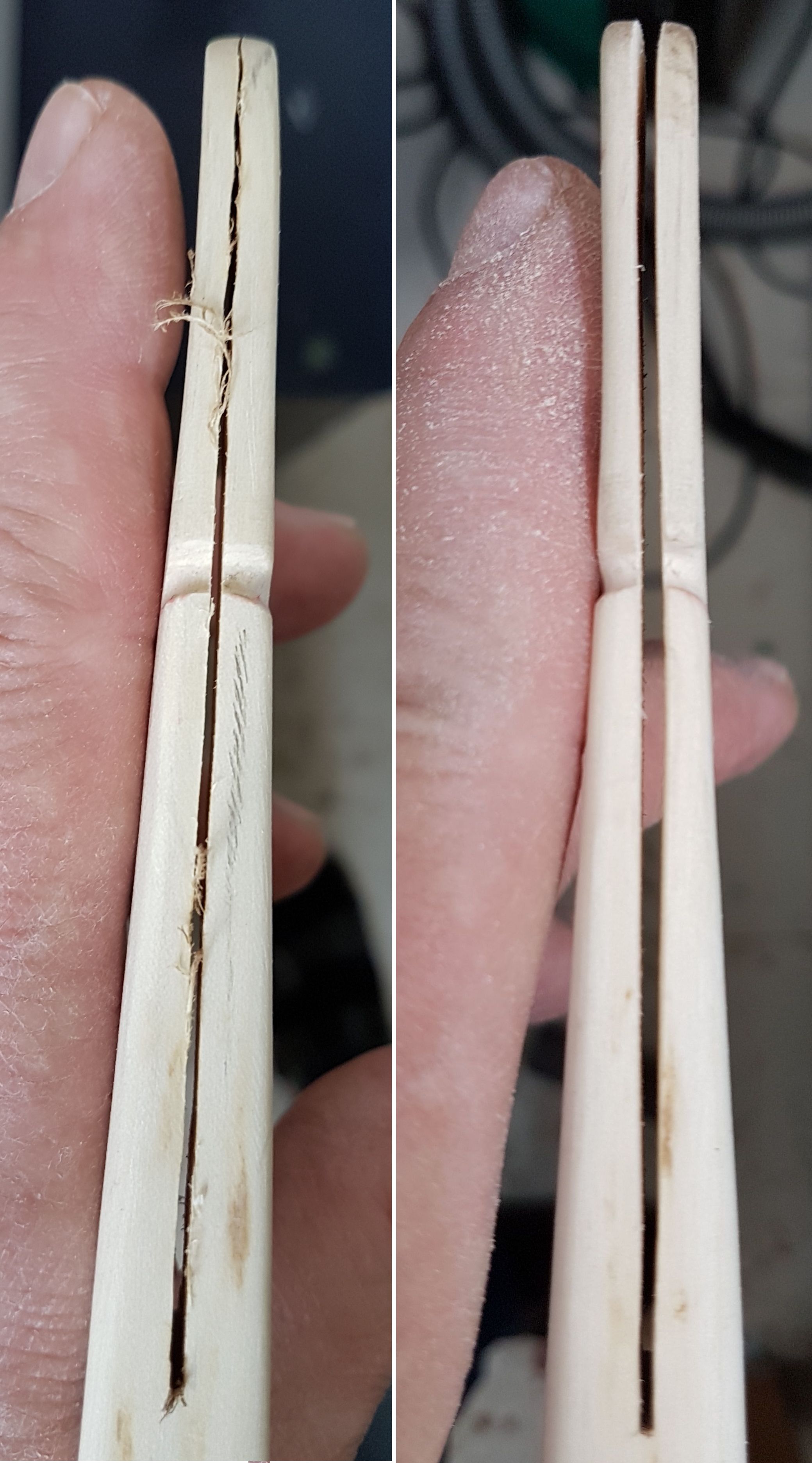 Ein fast passender Keil lag noch in meiner Grabbelkiste. Weil's draußen schon zu dunkel war, hab ich mich für Handschliff entschieden, der Keil war deutlich zu dick.