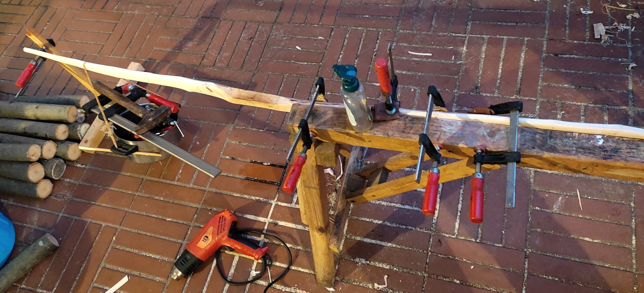 Aus Wildkirsche einen Bogen zu bauen ist nicht einfach, ich hab es nach mehreren Fehlversuchen aufgegeben.