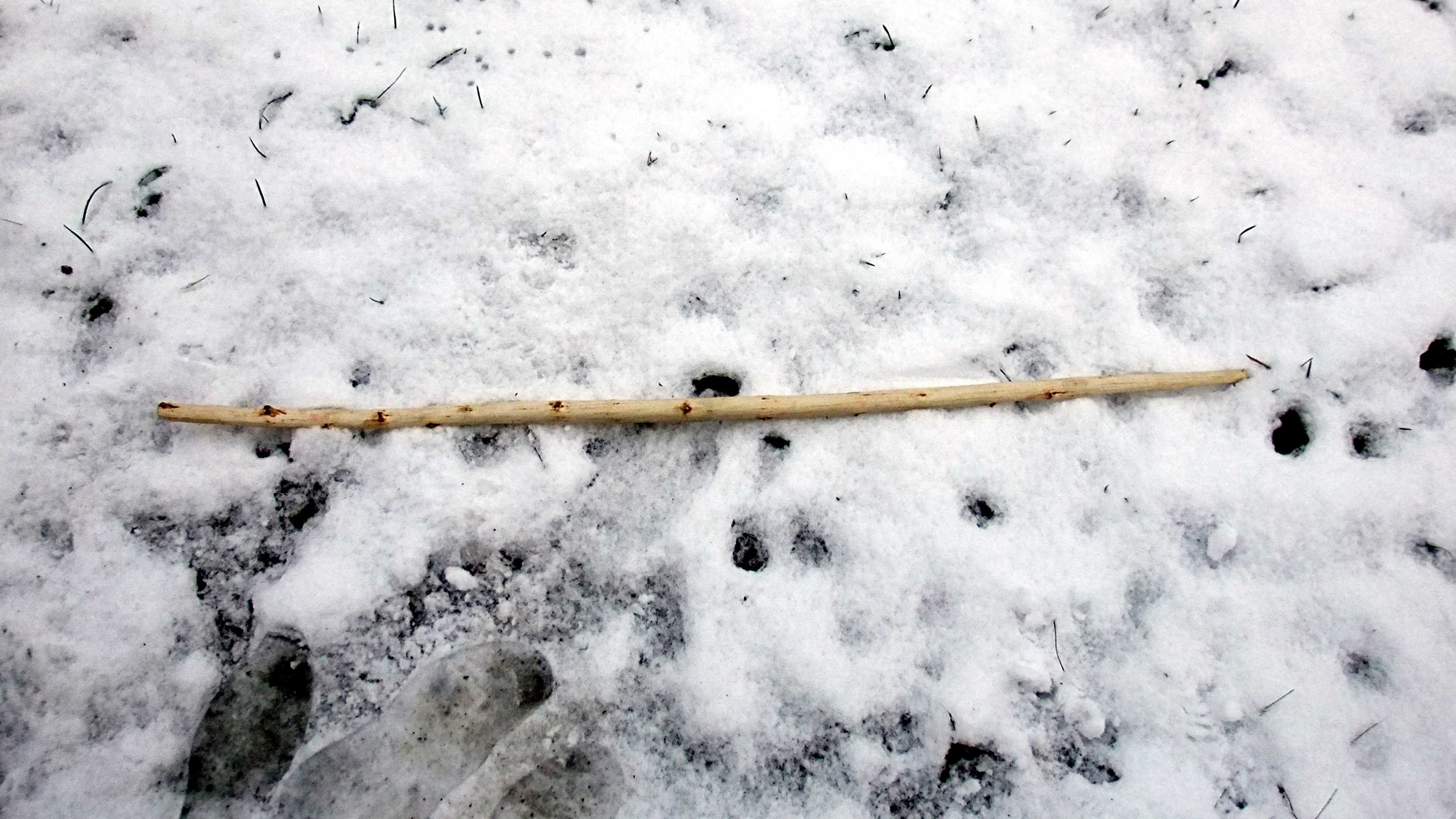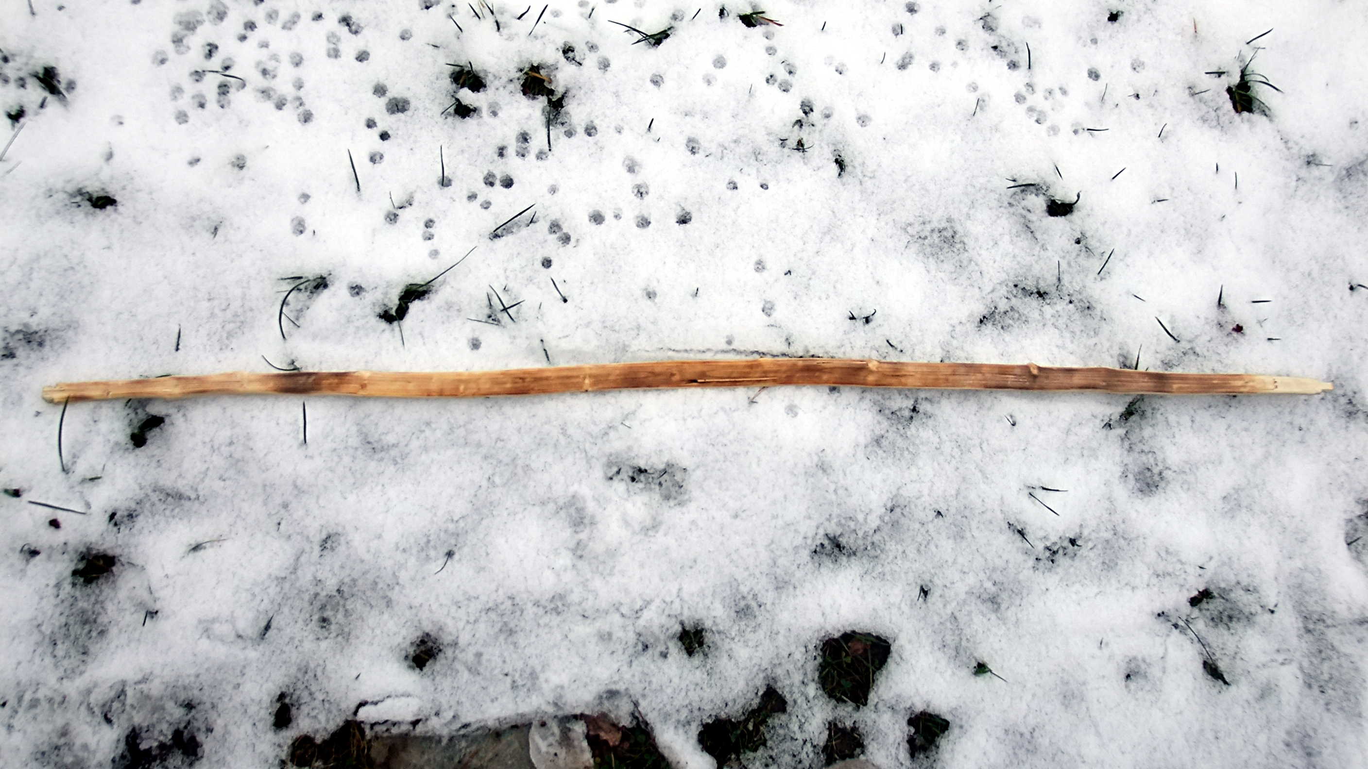 Feuerholz wird dieser Ligusterstreifen noch nicht, vorher drehe ich ihn noch ein bisschen hin und her, vielleicht fällt mir ja was anderes Cooles ein. Soll er erst mal fertig trocknen. Ein Atlatl geht immer.