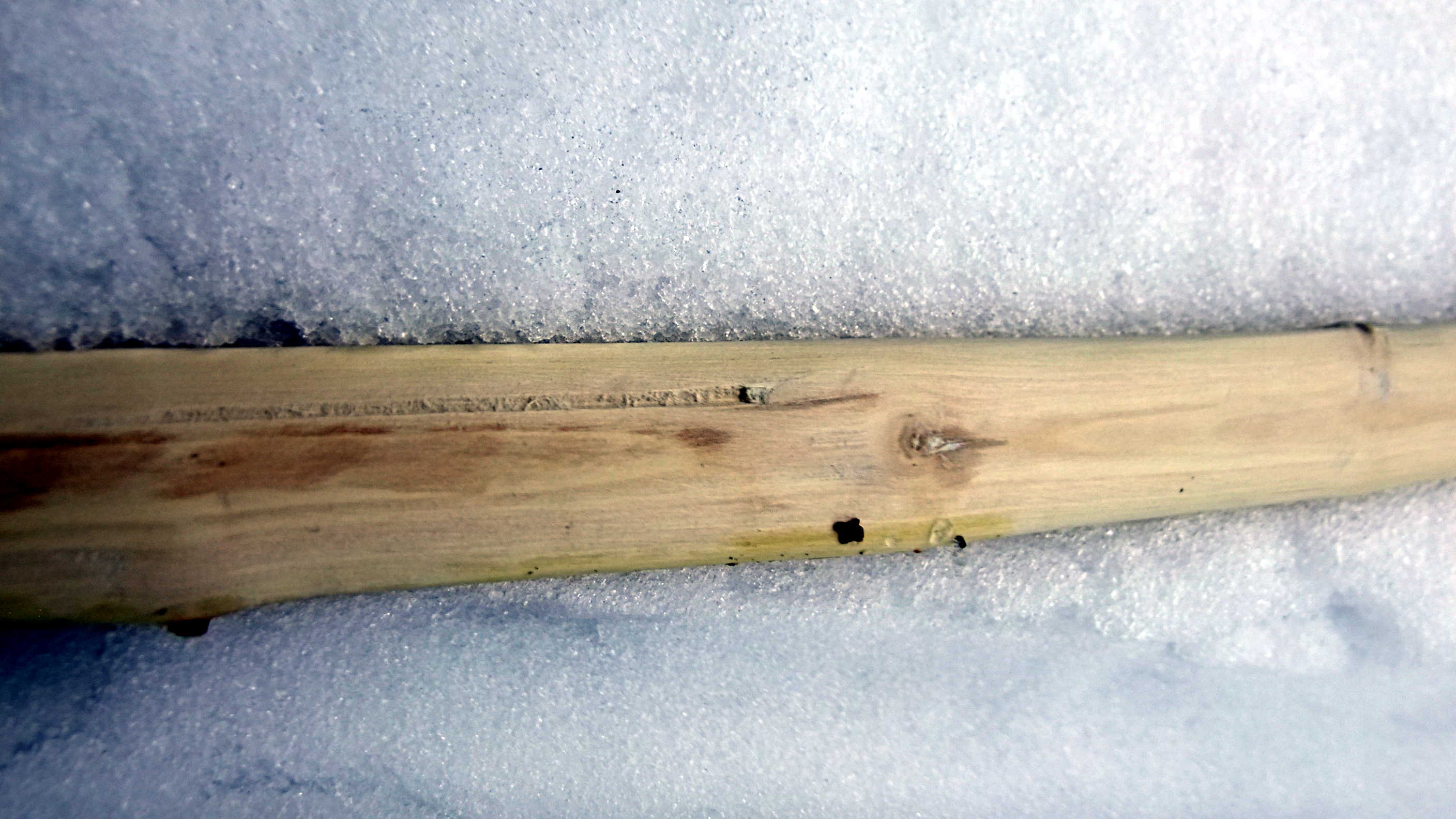 Zuerst hatte ich geschrieben, des Holz schnitzt sich wie Hasel bis Weide, aber jetzt meine ich, Linde oder (Gemeiner) Schneeball trifft es besser. Der Bogen ist 95 cm lang und bringt 22 lb, bis er stackt, bei welchem Auszug, habe ich nicht gemessen. 147 g, mal sehen, wie er die Stäbchen schnipst. Vielleicht ist das Zeug ja doch zu was nutze.