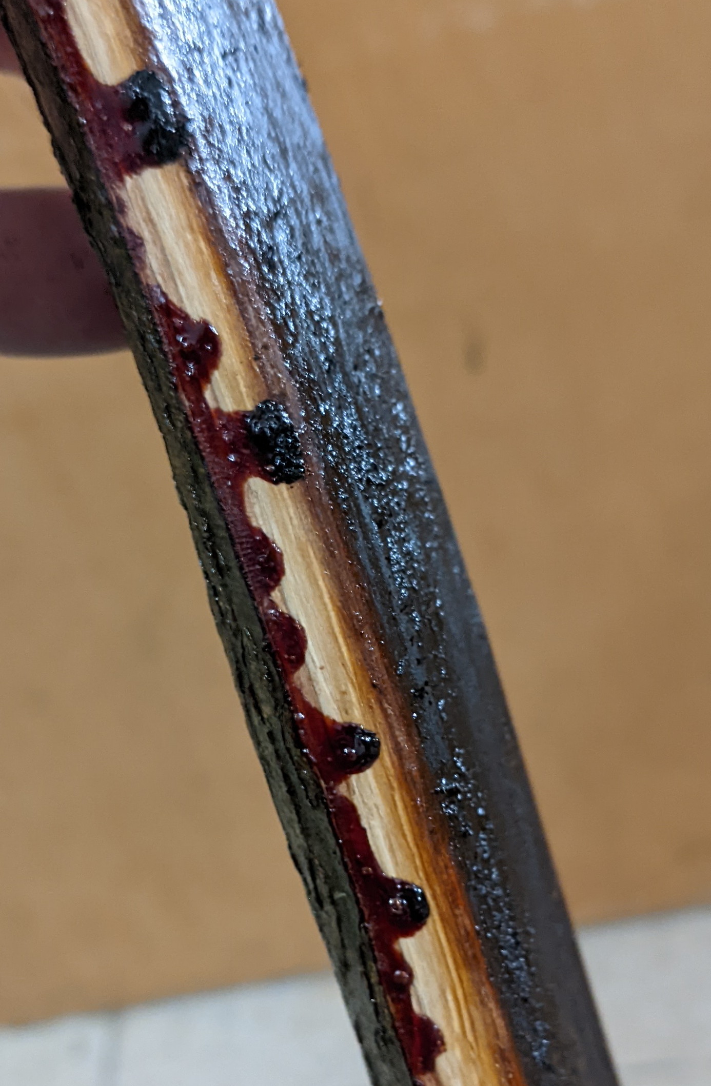 Hier noch ein interessantes Bild, dachte zuerst an das Leinöl, kommt aber zwischen Rinde und Holz hervor, der arme hat tatsächlich geblutet :o ;)