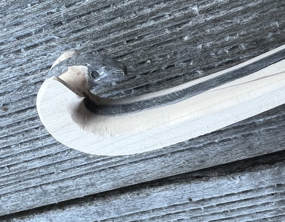Heute die Tipps zurecht geschnitten und verschliffen. Oberes Tip in Form einer Kobra. Unteres Tip in Form eines Pferdekopfes, die Wurfarmenden noch etwas verschmälert, Sehnenkerben eingesägt und dann den Rücken verschliffen. Gewicht jetzt 367 Gramm. Raspeln, verschiedene Feilen, Fliesensäge, schmale lange Schleifbandstreifen, Bandschleifer, Schleifpapier bis 180. Jetzt gehts noch ans Straußensehnen zupfen. LG Stephan