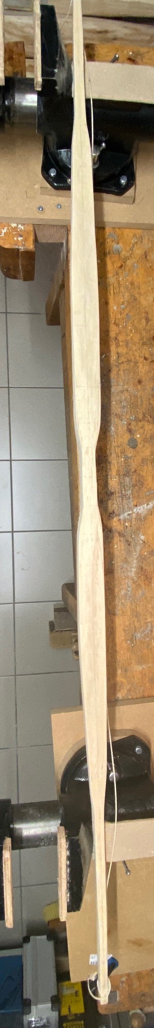 PS ich schätze, dass Du bei diesem Breiten Profil auf eine Dicke von 1,2cm an der breitesten Stelle kommt, wenn Du ca 40# anstrebst..