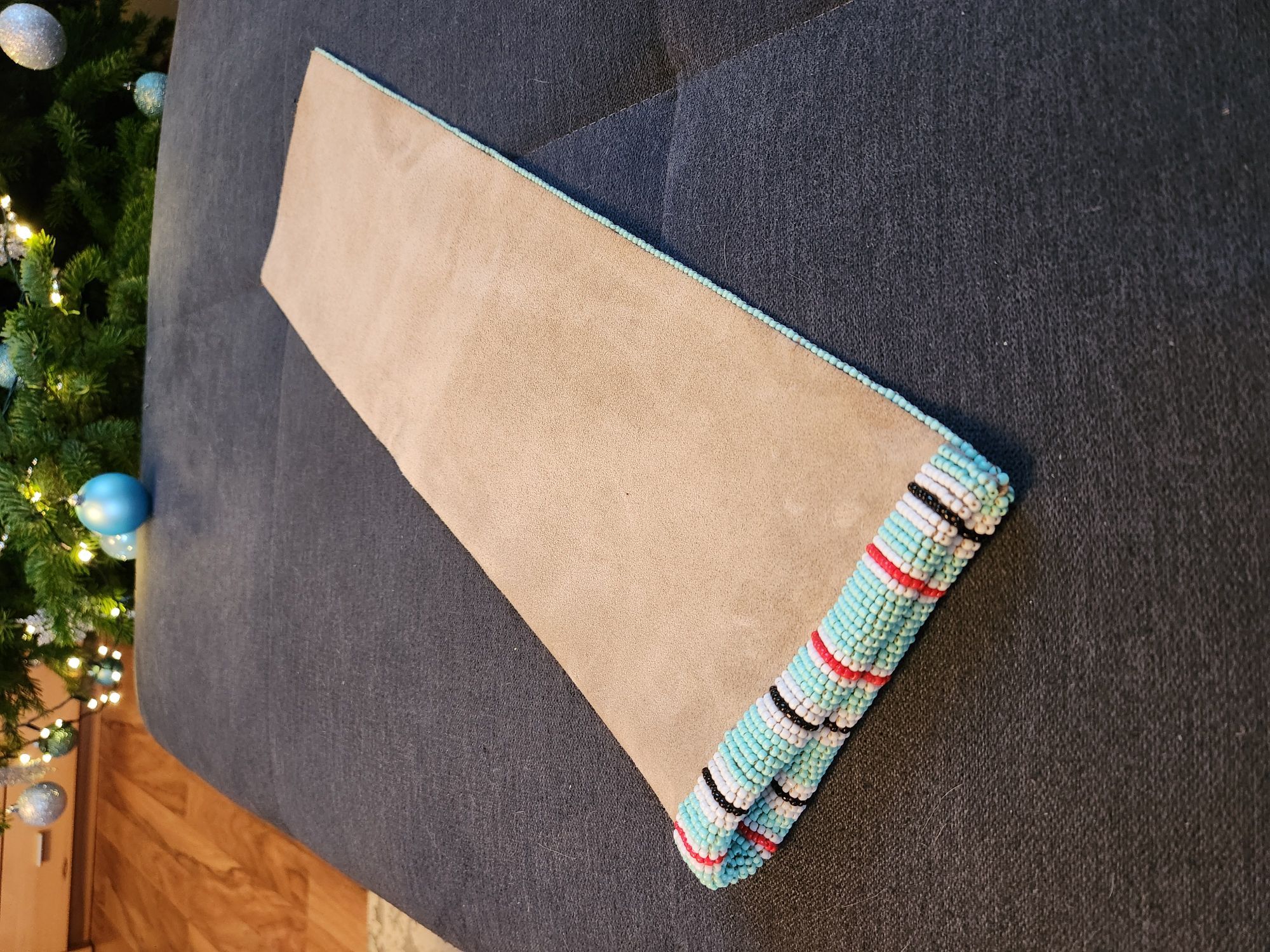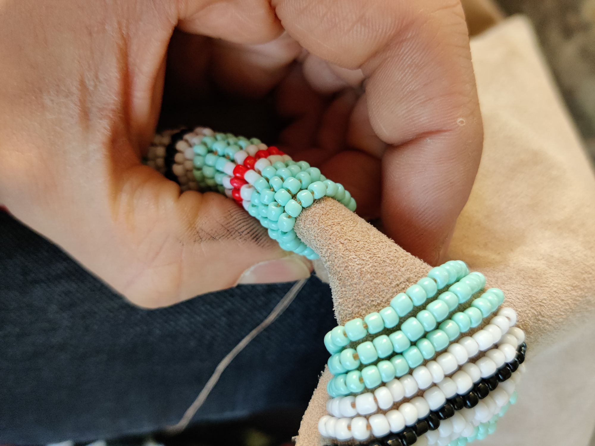 Ich hab den Köcher zusammengenäht und wie beim Tragegurt mit Perlen versehen.