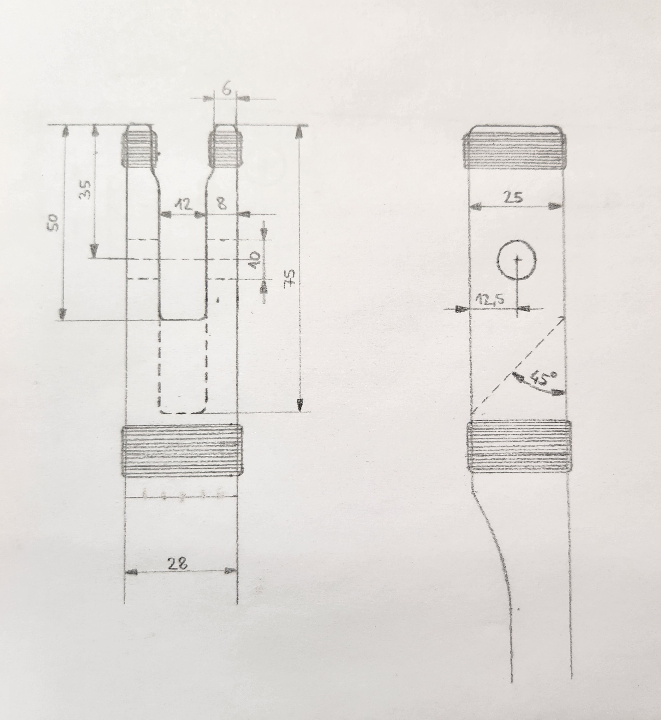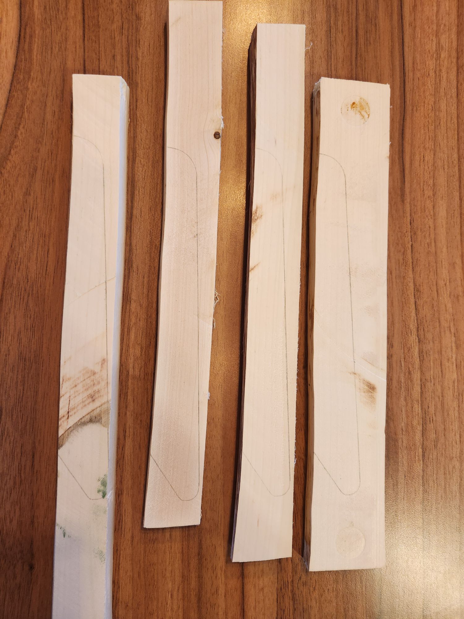 Heute mal die Recurves aufgezeichnet (dabei hab ich das Ende doch ein bisschen dicker gelassen als auf der Schablone, vorsichtshalber), ausgeschnitten und auf Linie gefeilt.