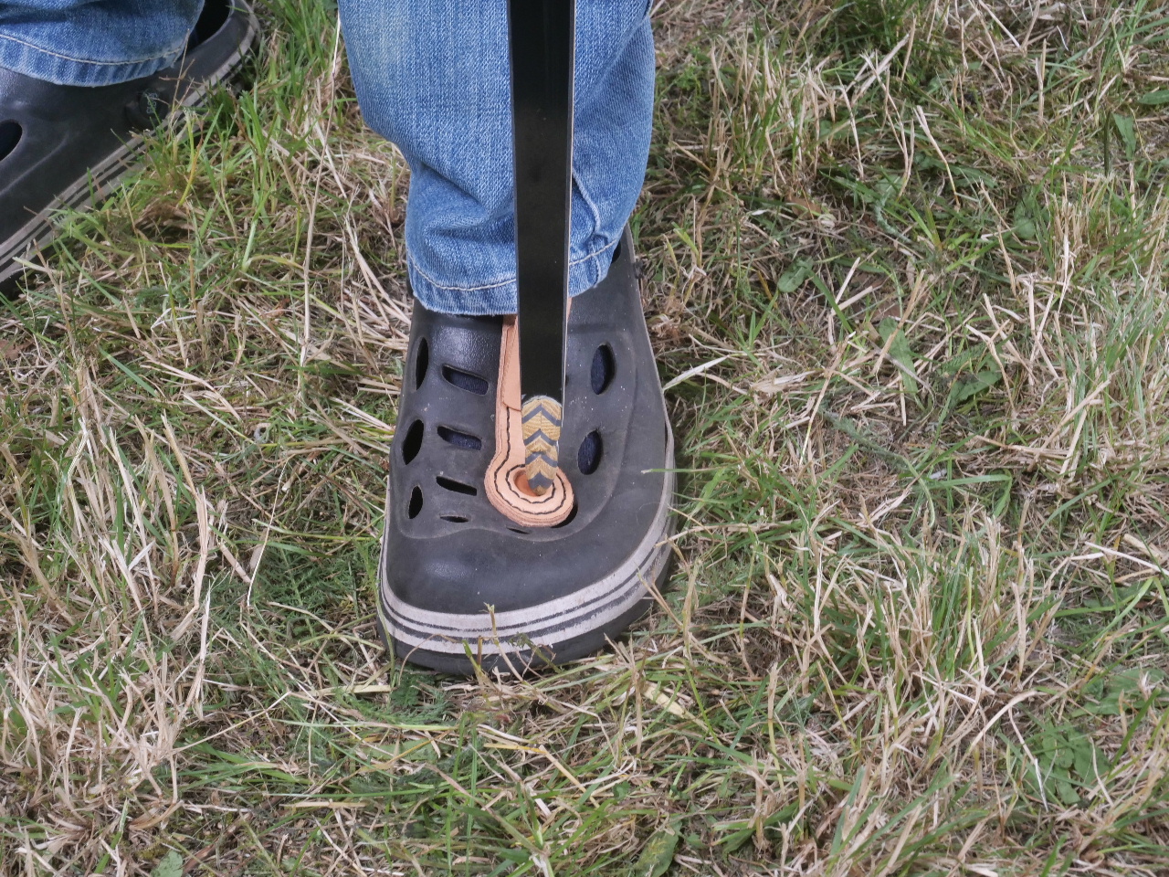Jürgen machte wieder feine Lederarbeiten, z.B. hier ein Schuhschoner zum Absetzen der Bogenspitze