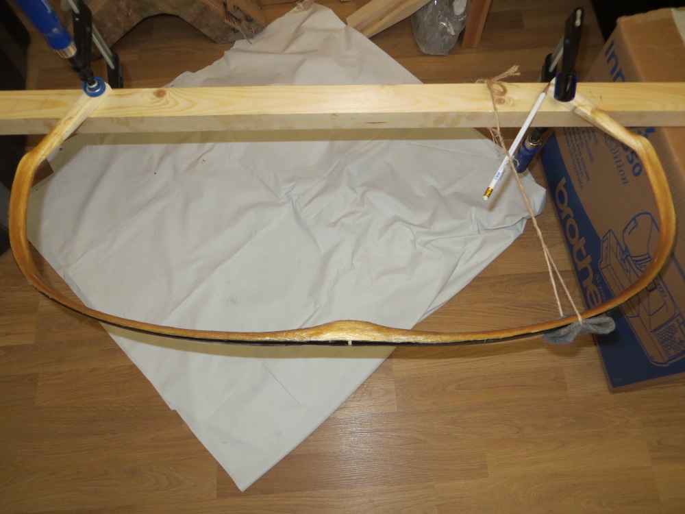 Den Bogen habe ich jeden Morgen ein wenig weiter in Reflex gezogen, um mit der sich zusammenziehenden Sehne "mitzugehen". Dabei machte sich ein Ungleichgewicht zwischen den Wurfarmen immer mehr bemerkbar.