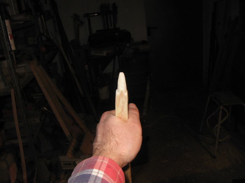 Dabei muss man sehr aufpassen, daß das Horn nicht am Schleifstein "hüpft", sonst arbeitet man sich eklige Ecken rein, die nur mit viel nachträglichem Schleifaufwand wieder zu entfernen sind.