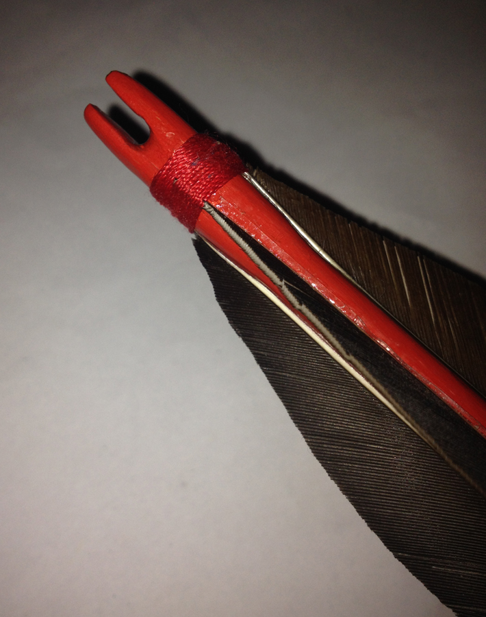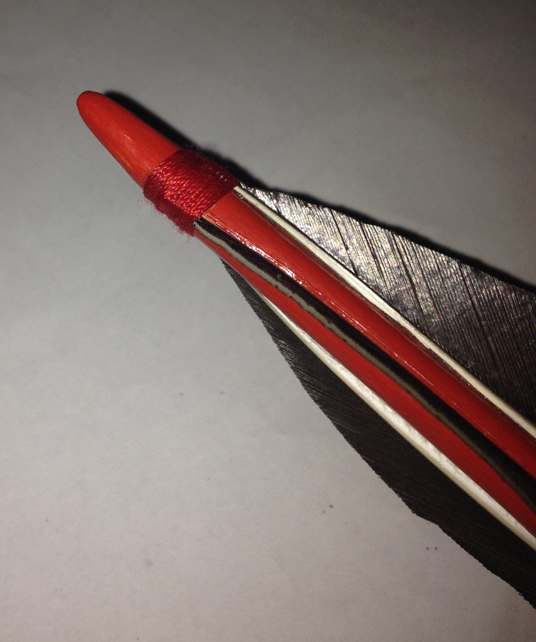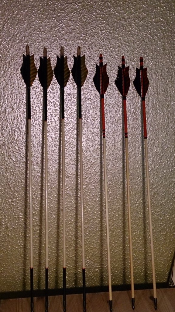 (komisches Wortgefüge) und an den anderen Dingern Spitzen ran zu machen) erst in ein paar Wochen ankommt, habe ich damit angefangen mir mit den Pfeilbau die Zeit zu vertreiben. Da das auch meine ersten Pfeile sind finde ich sie recht gelungen, obwohl ich die Federn bei meinem zweiten Pfeil falsch aufgeklebt habe. Trotzdem bin auch etwas entäuscht, weil ich gehofft habe, dass sie besser werden. Für das Cresten werde ich mir noch was überlegen da die paar Ringe relativ schief geworden sind.