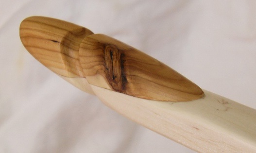 Habe bei diesem Bogen auch Tips aufgeleimt, die ich aus einem gebrochenem Eibenbogen (hatte viele Äste) gemacht habe. Mir gefällt die Maserung der Eibe sehr gut und mit etwas Mühe und Gedult kann man diese bei den Tips gut zur Geltung bringen.