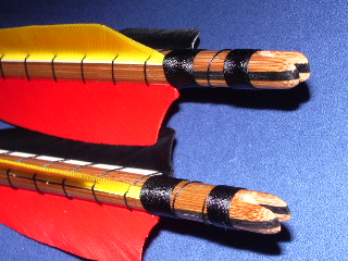 Nun, was soll man sagen... Schöne Pfeile! Die sehen sehr sauber verarbeitet aus, die Wicklungen sind wirklich schön gleichmäßig. Ich hab noch nie durch eine Feder durchgewickelt. mir kommt das so mühsam vor. Und wie bekommt man das so gleichmäßig hin? Sieht gut aus!