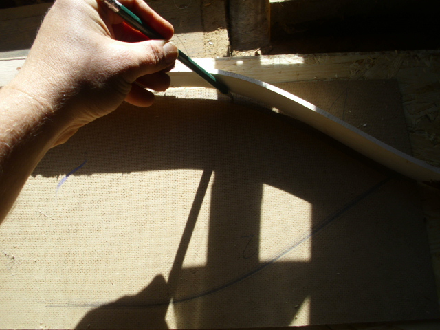 Um die Korrekturen am Tiller besser sehen zu können habe ich mir kurzerhand die Biegungen auf eine Schablone gezeichnet :