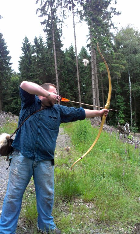 Letze Woche hab ich den laminierten mal lackiert, ist zwar nicht meine Paradedisziplin aber das steht im echt gut. Ein paar Pfeile sind auch geflogen.