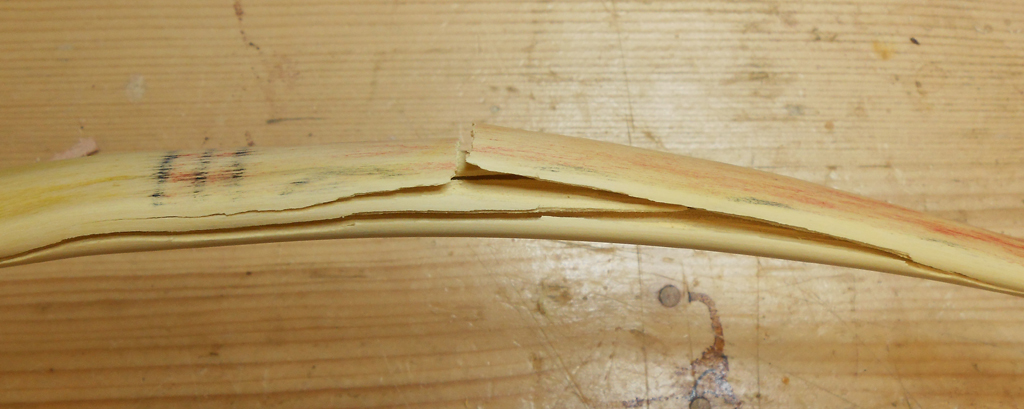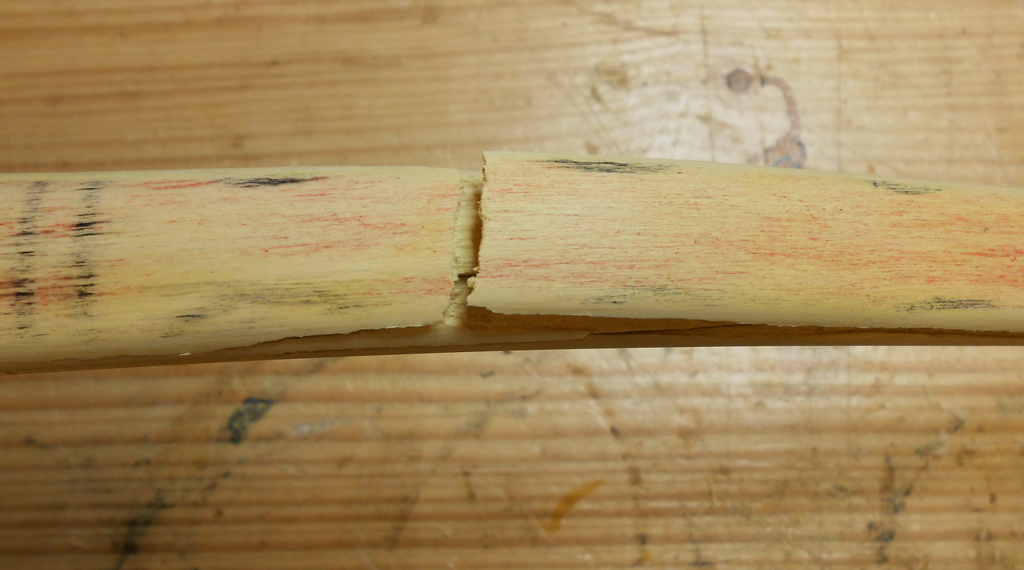 ziemlich so ist mein erster Bogen gebrochen.... nachdem ich ihn mit Leinölfirnis behandelt hatte... hab ich seither nie mehr gemacht... irgendwie denke ich Leinölfirnis dringt zu tief ein und braucht daher zu lange zum Trocknen und weicht das Holz daher auf und es kann dem Zug nicht mehr standhalten... ist aber reine Theorie.... ich nehme seitdem nur noch Hartöl und Hartwachs von Livos