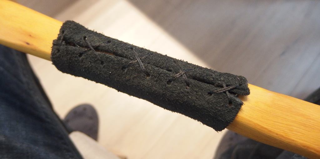 Ich muss das Griffleder sowieso nochmal runtermachen, weil der Griffaufbau oben etwas zu dick ist. Sah man erst nachdem der eigentliche Griff drum war. Dann kann ich das Griffleder auch noch mal passender zuschneiden. Das mit dem Spalt unten sieht doof aus. Das mit Rand oben umklappen wäre einen Versuch wert.