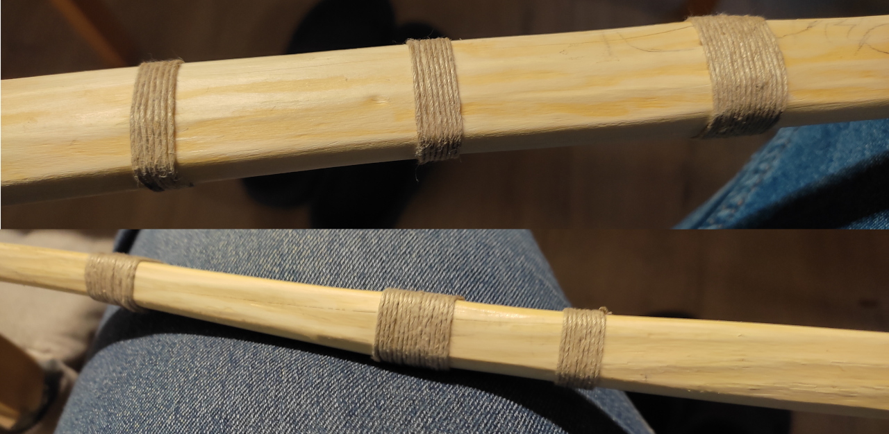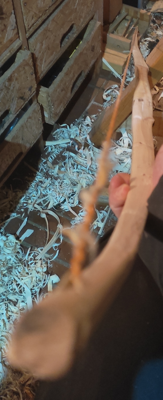 Erst spannen (angepaßter Auszug) und Tiller prüfen, dann die getaperten Enden wickeln. Der Bogen gewinnt einige Pfund! :)