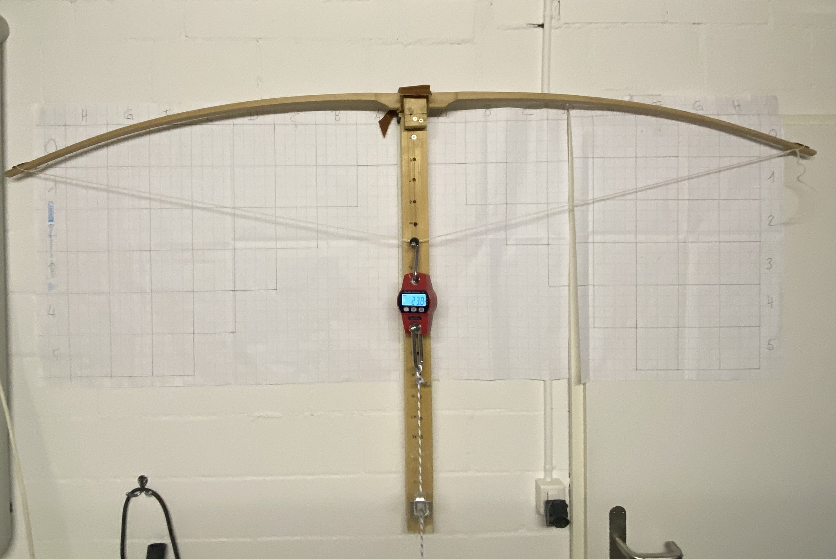 @alle: Ich konnte die Sehne zwar noch nicht verkürzen, aber aufgespannt, so dass die Sehne praktisch am Bogen anliegt, ergab es folgende Werte: