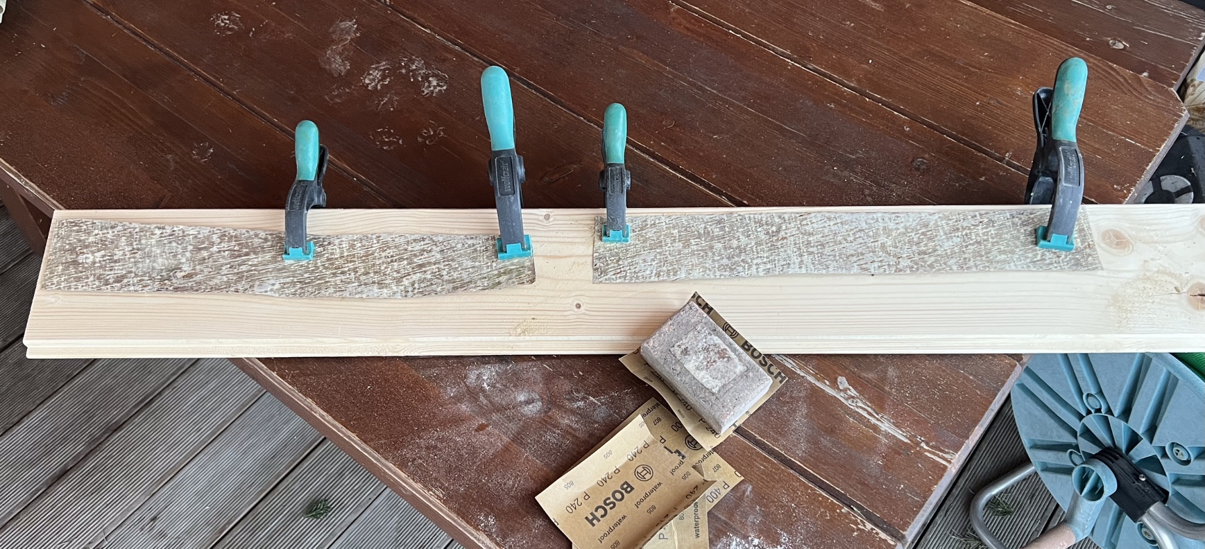 Vor dem Saunagang wurde der Bogen mit einem Hosengummi Stoß auf Stoß gewickelt, darüber 2. Wicklung in Gegenrichtung und zwischen 2 Leisten aufgespannt. Die ganze Prozedur hat 3 Stunden ohne Saunagang gedauert.
