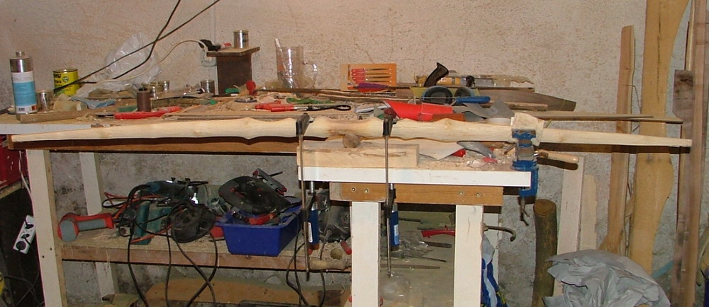 Plötzlich geht es. der Bogen bekommt zwar etwas Dauerbiegung, aber es wird ein Bogen.