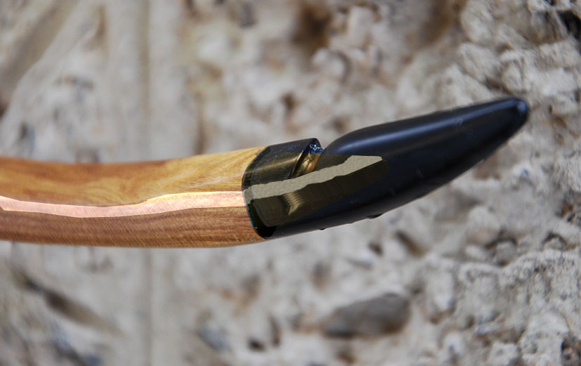 Eine Kleinigkeit wollt ich noch über die Nocks von meinem Goldregen schreiben, das war echt nicht einfach zu lösen das Problem, auf den Bildern vom Hohenaschau Bogen von Dirk, ist zu erkennen, dass die Geweihnocken die Kontur des Bogens fortführen ohne an irgendeiner Stelle erhaben zu sein. Dieses Designmerkmal wollte ich besonders hervorheben und deshalb nicht nur die Kontur sondern auch das Profil in den Nocken fortführen.