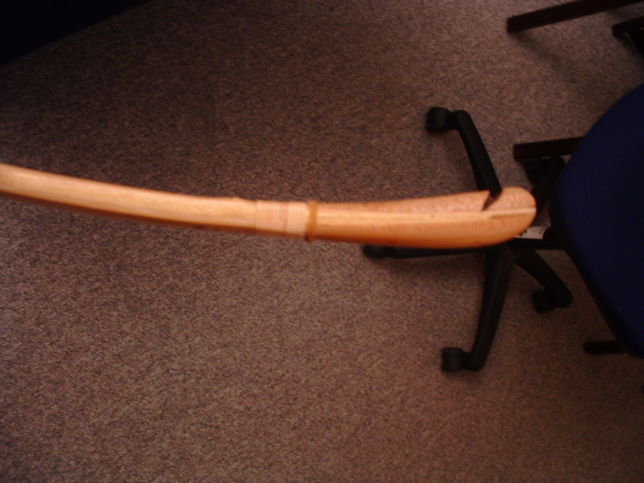 Ich denke, das das Birnenholz an meinem Bogen nicht zum Abplatzen tendiert.