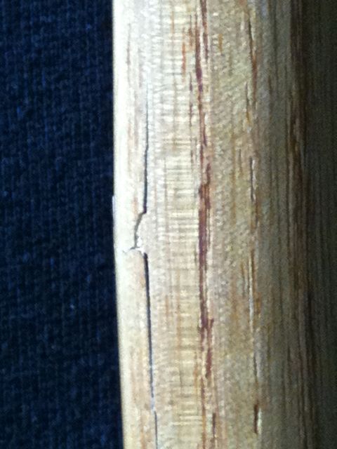 Eine Mischung aus leichter Delamination und Spanabhub mit Riss. Was für eine Reparatur spricht ist, dass weniger als der halbe Rücken gebrochen ist.