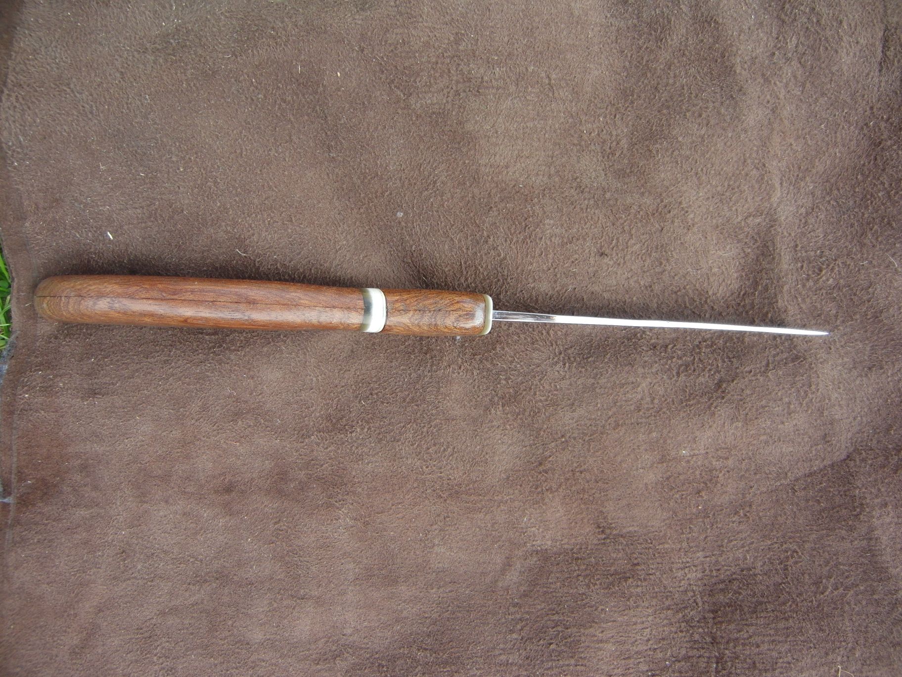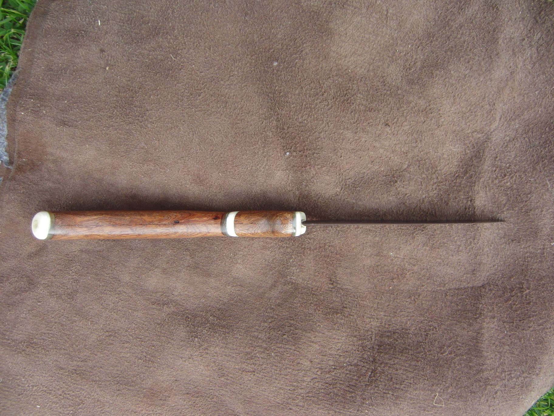 Man könnte auch das Holz des Griffes dunkel machen wie in der Zeichnung und die Ecke die in der Zeichnung hell ist, ebenfalls in Echt durch ein helles Stück Knochen abbilden. Das gäbe sicher einen tollen Kontrast... Das kam mir so als Idee als ich das gesehen habe.