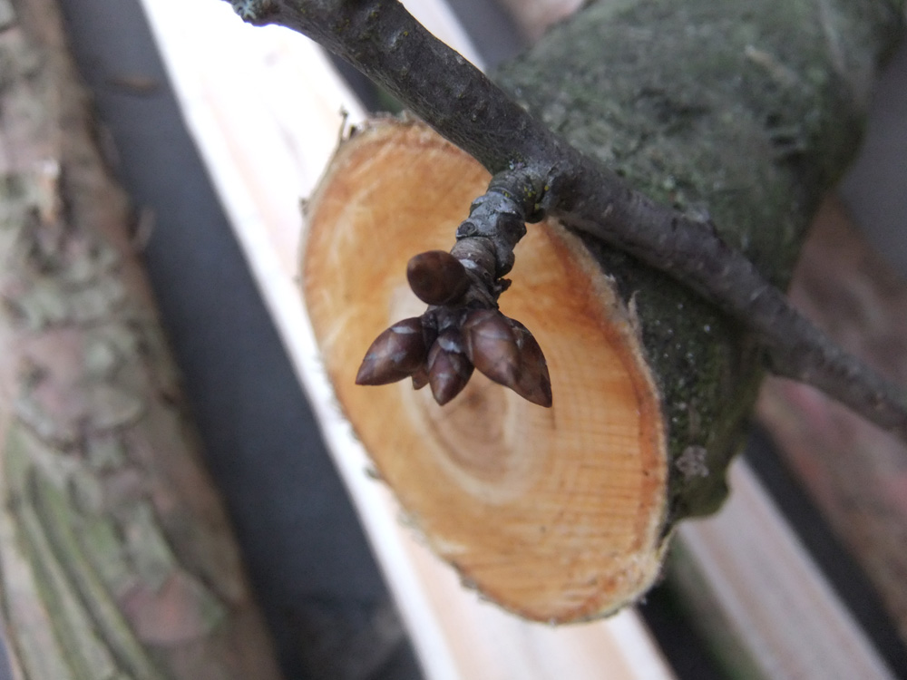 Stell doch den zweig in die Vase! Im warmen Wohnzimmer müsste der in 1 - 2 Wochen aufblühen!
