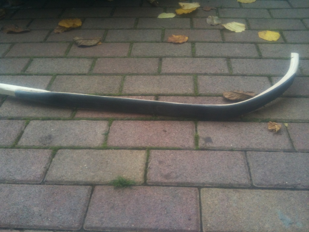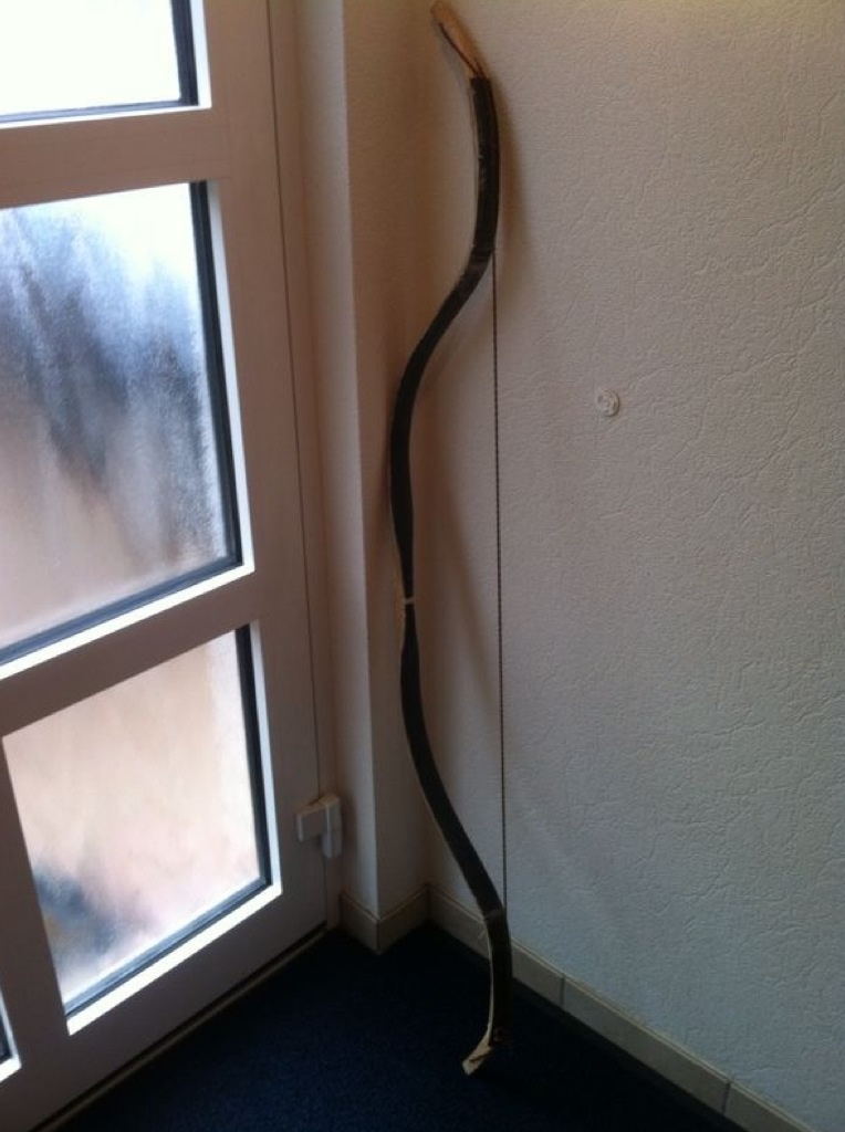 Es sind nun alle Hornstreifen am Bogen verleimt und die zwei Sehnenschichten trocknen nun schon 4 Wochen.