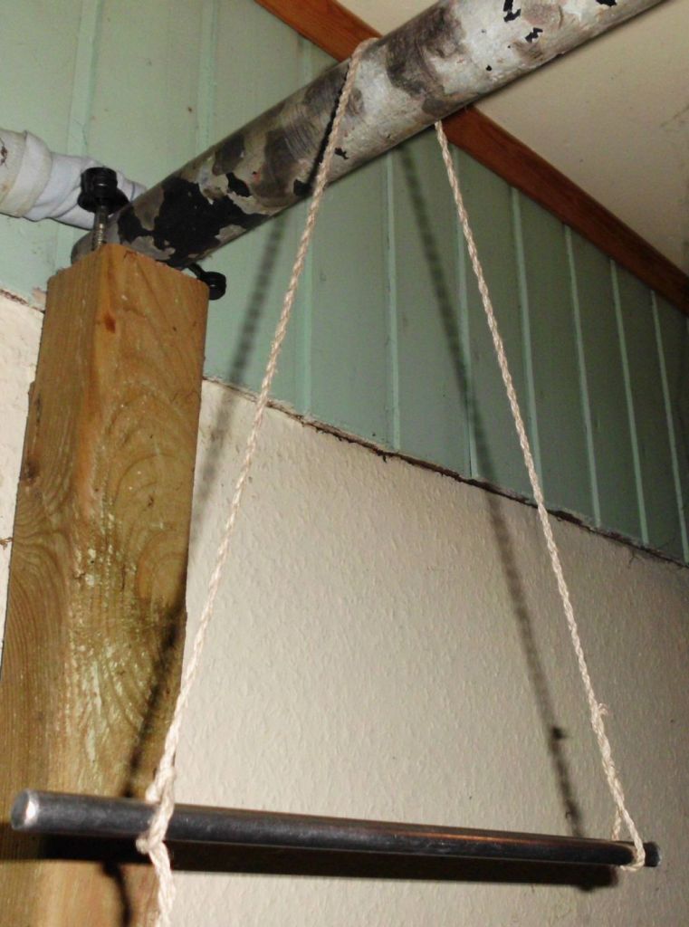 ich wollte sehen, ob Öhrchen und Knoten halten, außerdem kann man sich bequem an dem Rundstahl dranhängen