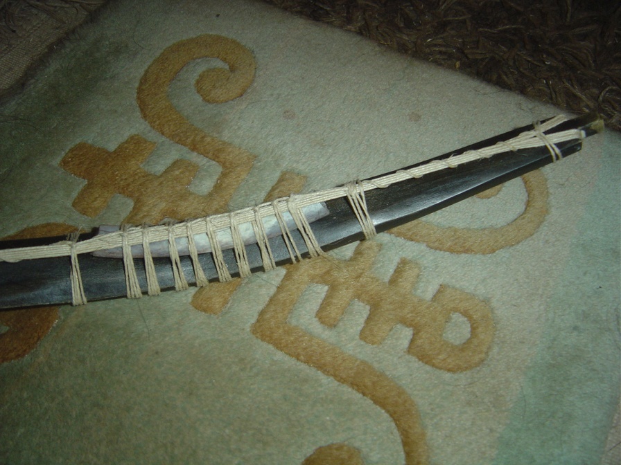 Zitat aus dem Grasyon Buch: Stücke von Walknochen stützen den Recurvewinkel unter dem Sehnenbelag...
