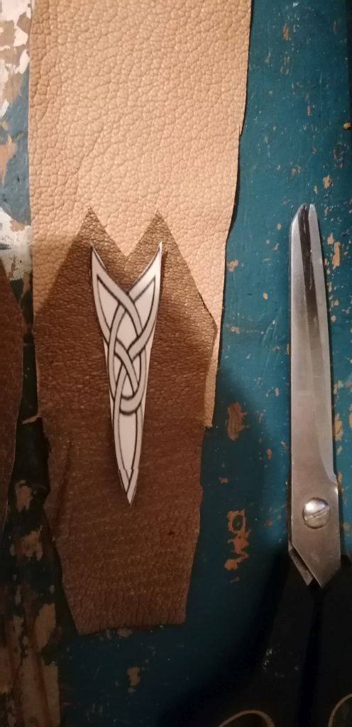 So, habe mal die Ledersteifen ausgesucht aus all den vielen Ziegennappa, das ich als B Ware mal günstig geschossen habe. Die Leder haben eine Stärke zwischen 0,2-0,5mm . Das Design steht nun auch fest. Ich habe mich für Keltische Ornamente entschieden. @ Neumi du siehst es gibt viel zu tun...die Zeit drängt
