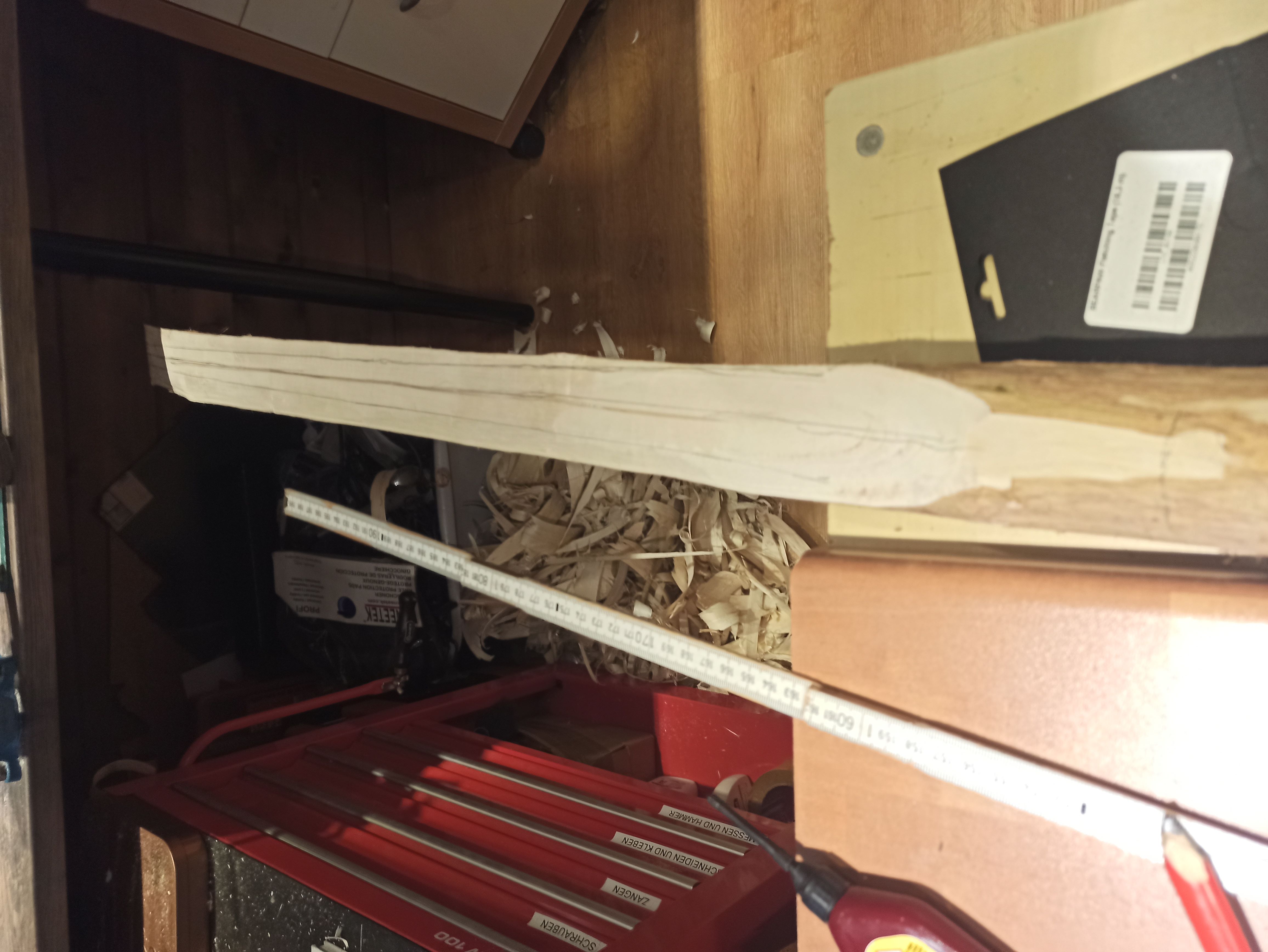 Zum Bearbeiten der Seitenlinie und Anzeichnen auf dem Bauch: Wenn man die Klinge dem Holz folgen lässt,kommt die reale Rückenlinie fast automatisch raus. Natürlich evtlen Drehwuchs beachten .