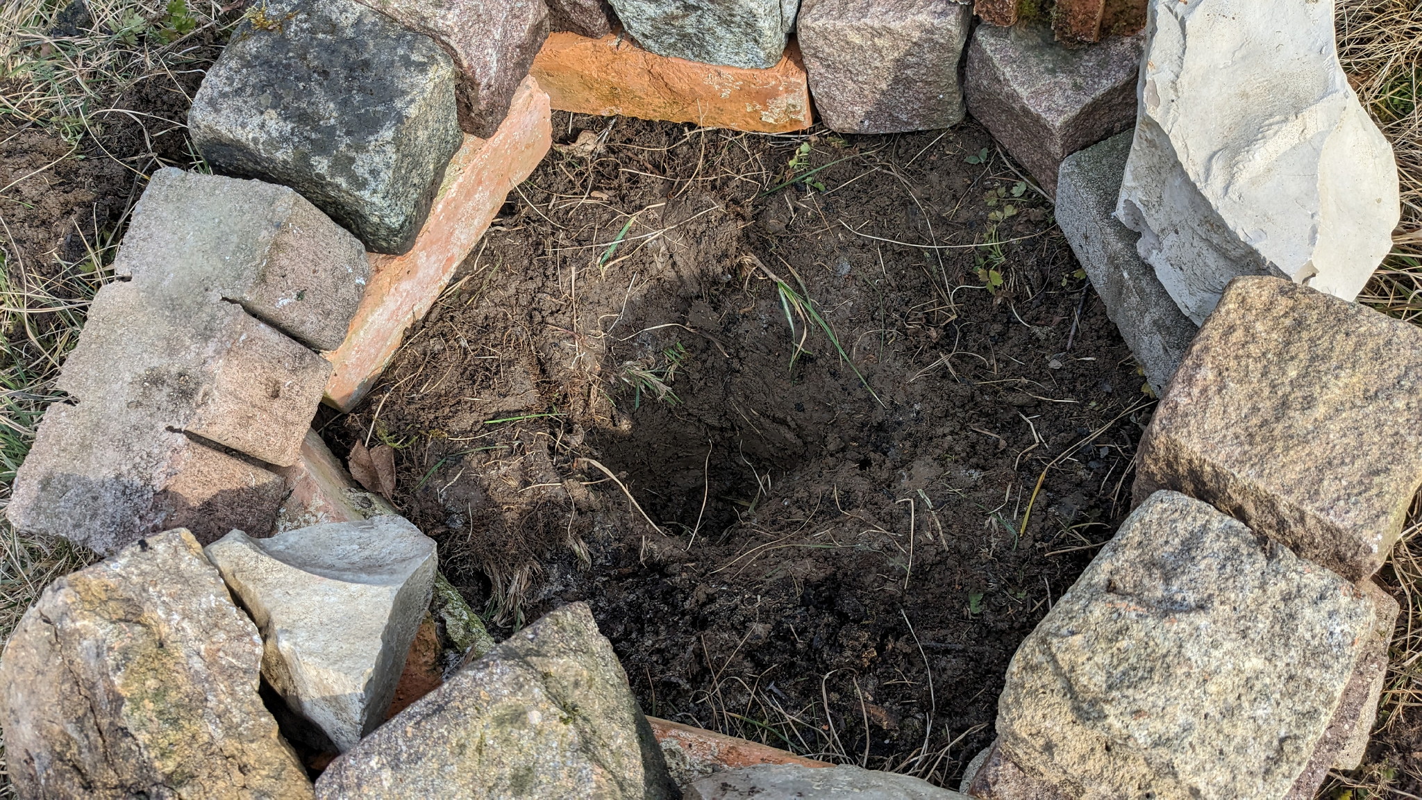 Ins Feuer? Wurde der Behälter nicht unter der Feuerstelle eingegraben?