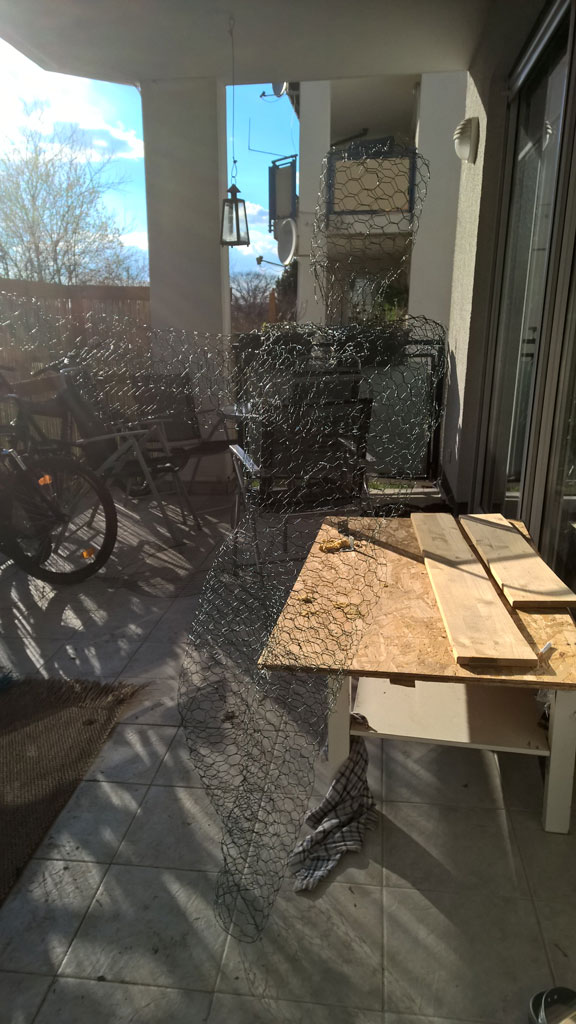 Das "Grundgerüst" besteht aus normalen Maschendrahtgeflecht. Das Innenleben werden Ethaform-Stücke und das ganze wird dann mit normalen Bauschaum überzogen/ausgefüllt und in Form geschnitten. Das Ganze bekommt dann noch nen Überzug aus Acrlyspachtel und dann gehts ans bemalen.