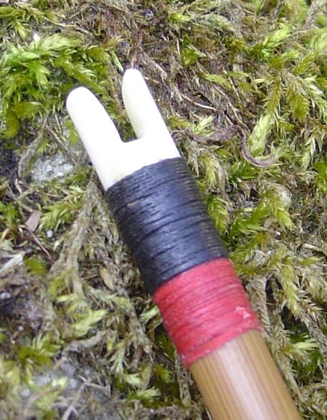 obwohl mit der Schlitz etwas breit geraten ist fliegt der Pfeil gut, die Wicklung geht über die Nocke, erschien mir stabiler